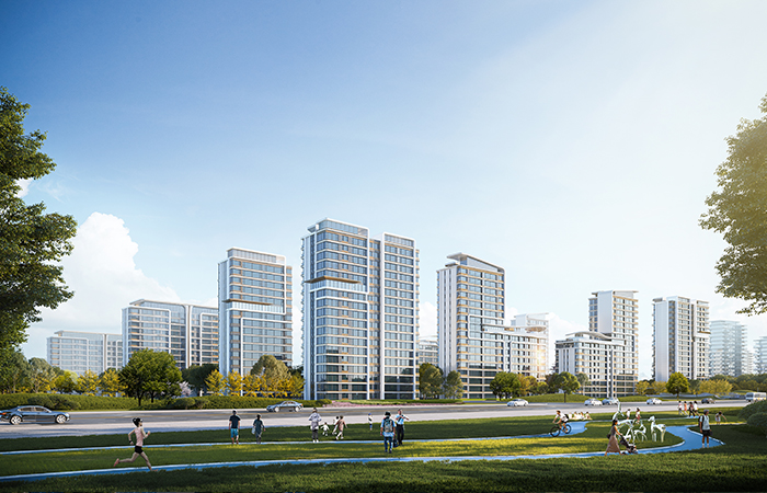 項(xiàng)目對太平河景觀空間進(jìn)行最大化的導(dǎo)入,以“三月春山,碧水粼波”為核心設(shè)計(jì)理念,采用開放式建筑布局,確保項(xiàng)目界面與太平河景觀形成良好互動,分區(qū)分段設(shè)置沿河視線通廊,同時形成東西向景觀漫步系統(tǒng),增加片區(qū)的呼吸空間和街道界面層次。同時項(xiàng)目融入2 大設(shè)計(jì)專利,運(yùn)用高品質(zhì)材料打造全幕墻外裝體系,構(gòu)建城市封面之作,讓人們置身于太平河畔的美好生態(tài)環(huán)境中,感受建筑的質(zhì)感和生命力。