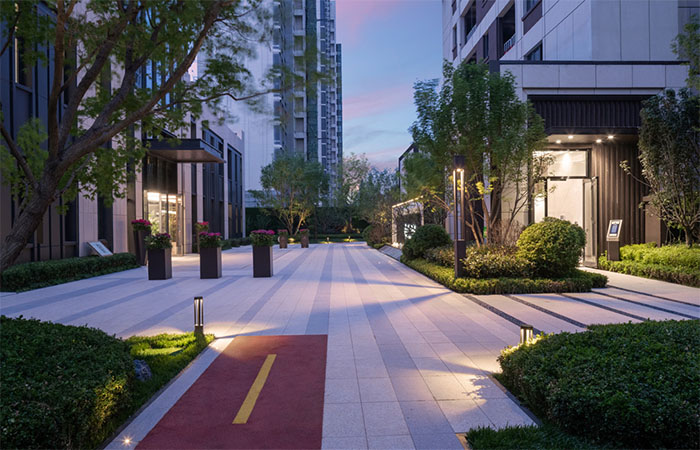 地塊形成南北向和東西向兩條景觀軸,南北主軸為本項目景觀設計重點部位,力爭打造“園中有筑,筑即為景”的建筑與景觀結合的典范中軸系統(tǒng)。地塊形成四個分區(qū)。序列性景觀節(jié)點,形成多重禮儀空間,傳承中國的空間禮序。通過中軸建筑的錯落式布局,形成多個半圍合式的居住組團空間。