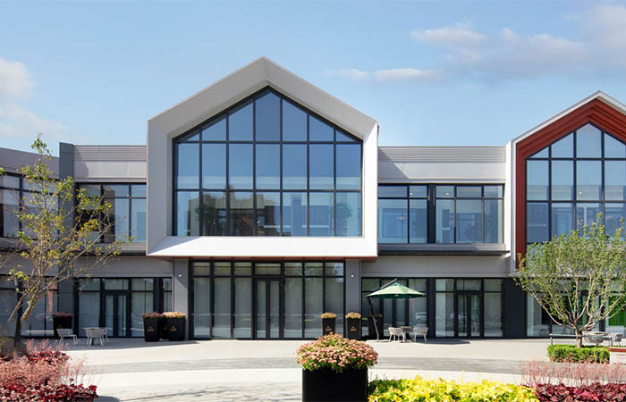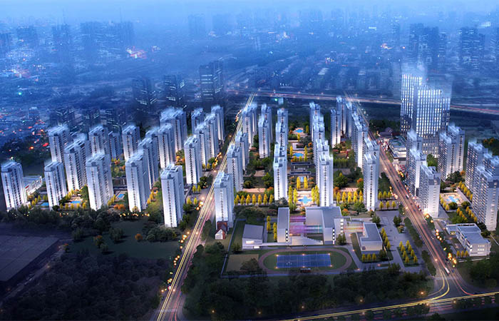 住宅以板式高樓為主,沿街及地塊中心布置點式高層;同時在沿城市主路及中心節(jié)點處,按區(qū)域降低高層建筑高度。建筑頂部塔樓采用平屋頂形式,低層采用平坡結合的屋頂形式,高低錯落,局部退層,改善單調的天際線形象。