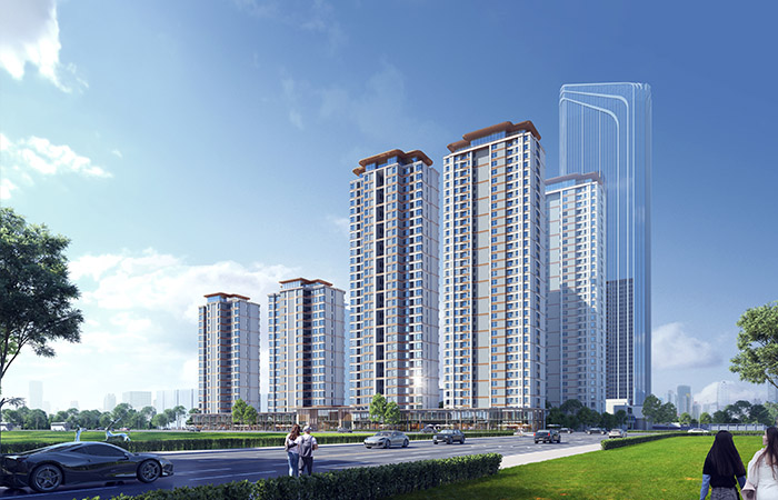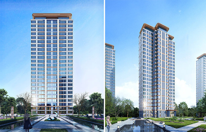 依托石家莊源遠流長的文化底蘊,弘揚傳統(tǒng)文化的同時塑造城市新名片。建筑立面靈感來源于傳統(tǒng)器物美學,引入“行云如意”的設計理念,打造具有文化內(nèi)涵的城市核心地標。塔樓造型的對稱手法,視覺上強化了內(nèi)聚和向心力的群組感,在城市空間中脫穎而出,成為槐安路的地標性建筑。住宅立面延續(xù)公建塔樓的設計語言,賦予建筑流暢柔美的姿態(tài)。