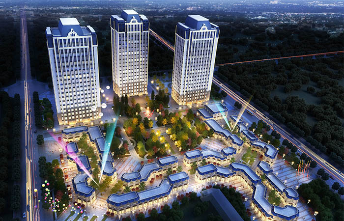 恒大城市之光商務(wù)中心項(xiàng)目用地位于邯鄲市北部,西側(cè)鄰滏陽(yáng)河,東、西、南三面環(huán)路,交通資源優(yōu)勢(shì)明顯。用地性質(zhì)為商業(yè)用地,規(guī)劃凈用地面積為5.3809公頃。項(xiàng)目南側(cè)規(guī)劃有三棟高層,地上為20層,北側(cè)規(guī)劃為1-2層的批發(fā)零售商業(yè)。其中1-2層的批發(fā)零售商業(yè)街布局靈動(dòng),充滿活力。建筑通過(guò)圍合的方式,形成超大尺度的綠化和集散空間。