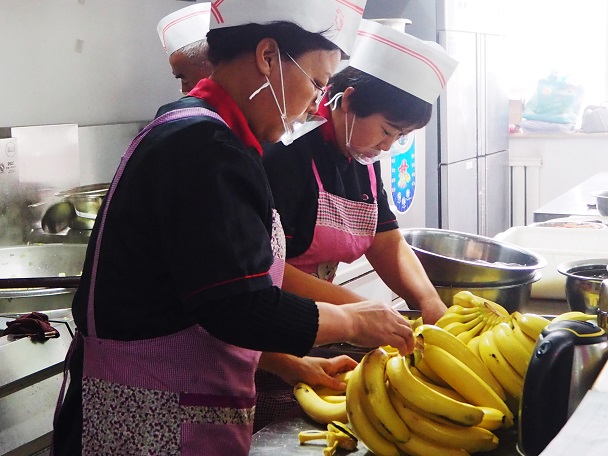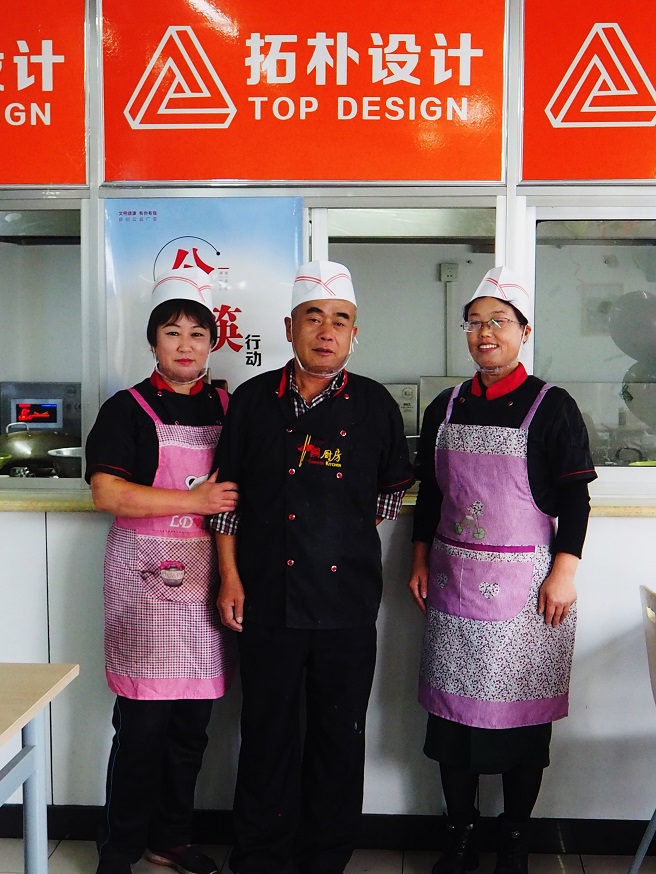 每人兩葷兩素一湯,自助吃到飽。最后來看一下食堂工作人員的風采吧~