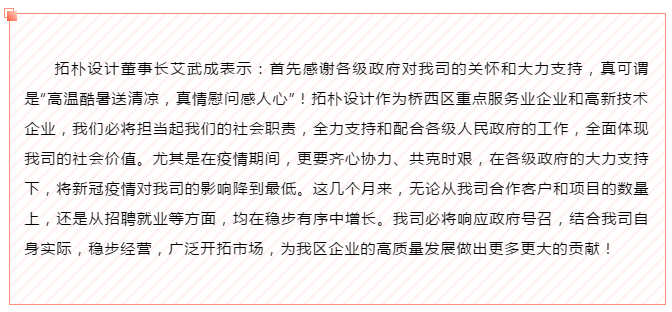 拓樸設(shè)計董事長艾武成向副區(qū)長趙月芬等領(lǐng)導(dǎo)匯報了我司的疫情防控工作及公司的經(jīng)營發(fā)展情況,