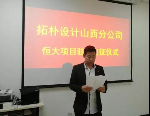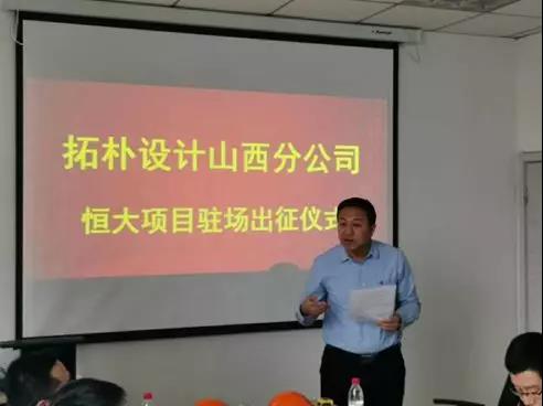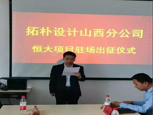 2019年3月26日,拓樸設(shè)計山西分公司恒大項目駐場出征儀式如期舉行,總公司執(zhí)行總經(jīng)理李玉軍、恒大總工室領(lǐng)導(dǎo)等人一同參加了此次出征儀式,為山西分公司戰(zhàn)友出征加油助威。