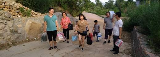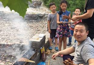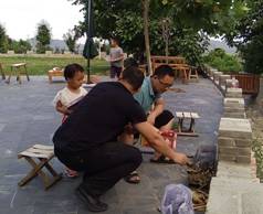 夕陽(yáng)西下,全員到達(dá)村西廣場(chǎng),休整之暇,孩子開心的跑到邊上撿石子玩耍。