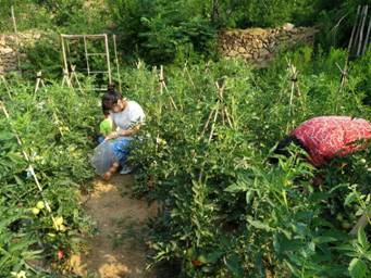 運(yùn)動(dòng)完畢,來(lái)菜園采摘,綠色無(wú)公害,真正長(zhǎng)紅的西紅柿,樹上的桃子、地里的西瓜、茄子、豆角等。