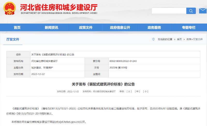 2023年6月1日開始執(zhí)行新的《裝配式建筑評價標(biāo)準(zhǔn)》DB13(J)T8321-2022